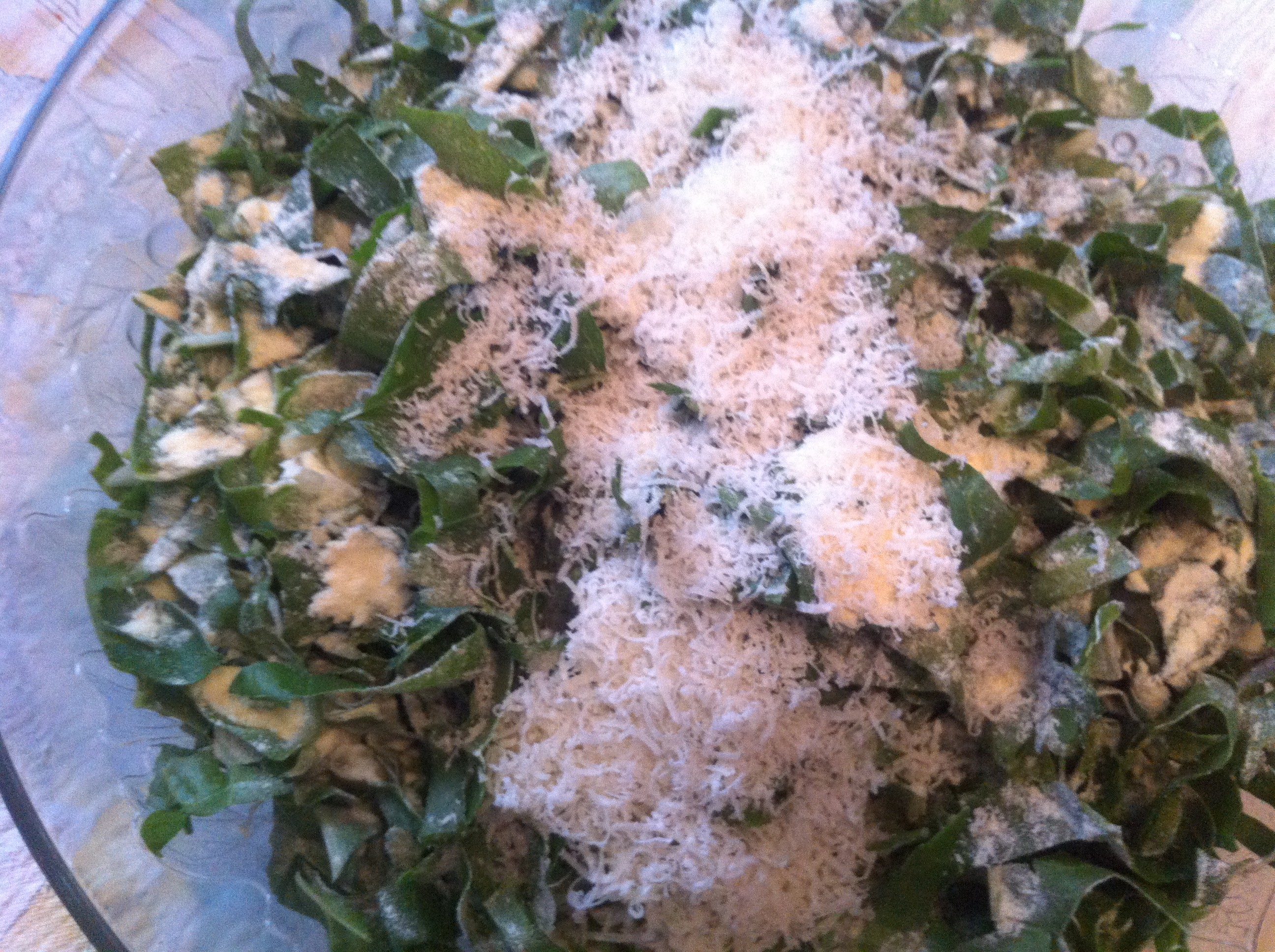 Lavate le bietole e tagliatele a striscioline, cuocetele a vapore (io uso la pentola a pressione) e poi lasciatele a sgocciolare in uno scolapasta. Una volta fredde, unitele alla ricotta, formaggio, cipolla, sale e noce moscata grattugiata. Amalgamate bene (io lo faccio con le mani) e poi mettete il ripieno in frigorifero per almeno un’oretta.